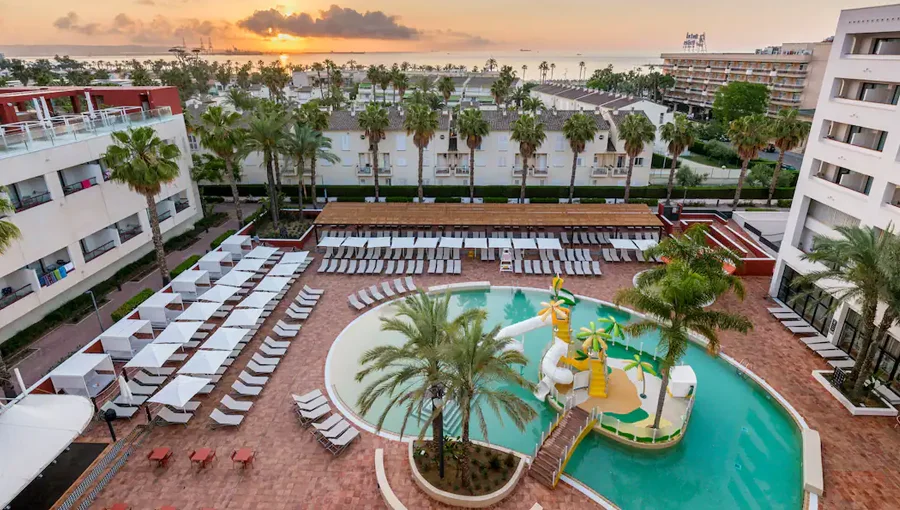 This is a budget friendly option which offers a little bit of everything. Don't expect 5-start luxury, but you still can expect a decent standard of accommodation. The hotel is fairly well located too. Just a few minutes walk to the beach and the waterpark. We like this for a cheap family holiday (as long as you upgrade to a duplex twin room).